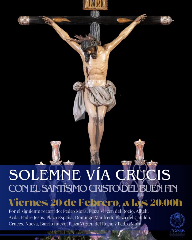 Enmarcado dentro del año extraordinario “Angustias Porta Coeli” por la celebración del 450 aniversario de la fundación de la hermandad de Santiago, la Junta de Gobierno acordó que el piadoso rezo del Vía Crucis que cada año recogen nuestras reglas, se celebre de forma externa con la imagen del Santísimo Cristo del Buen Fin. Con motivo de la ubicación provisional de nuestros titulares en la Capilla-Oratorio de la casa hermandad, y para poder dar una mayor organización y solemnidad al culto, se ha obtenido el pertinente permiso de la Autoridad Eclesiástica para cambiar la fecha establecida, y pasará a celebrarse el próximo día 20 de febrero, primer viernes de cuaresma.